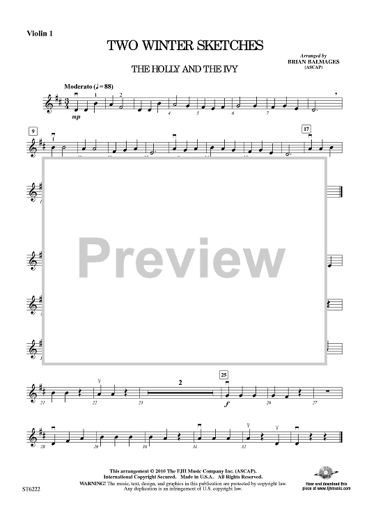 Digital Sheet Music for Two Winter Sketches - Violin 1 by Traditional, Brian Balmages scored for Orchestra; id:411655