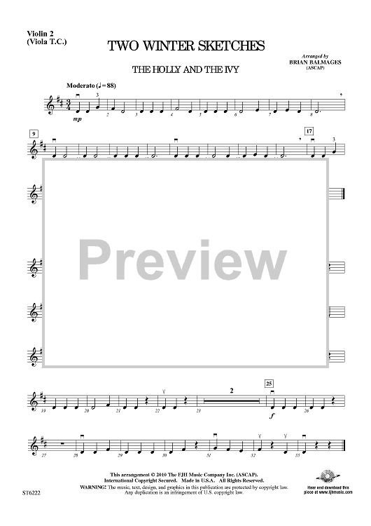 Digital Sheet Music for Two Winter Sketches - Violin 2 (Viola T.C.) by Traditional, Brian Balmages scored for Orchestra; id:411656