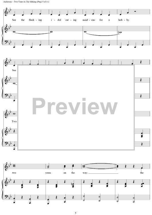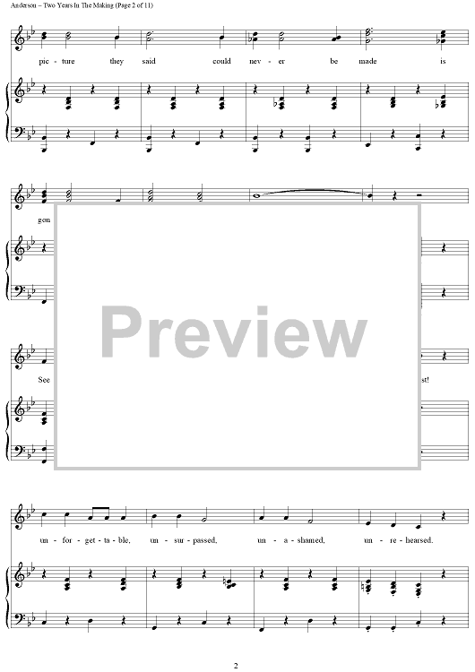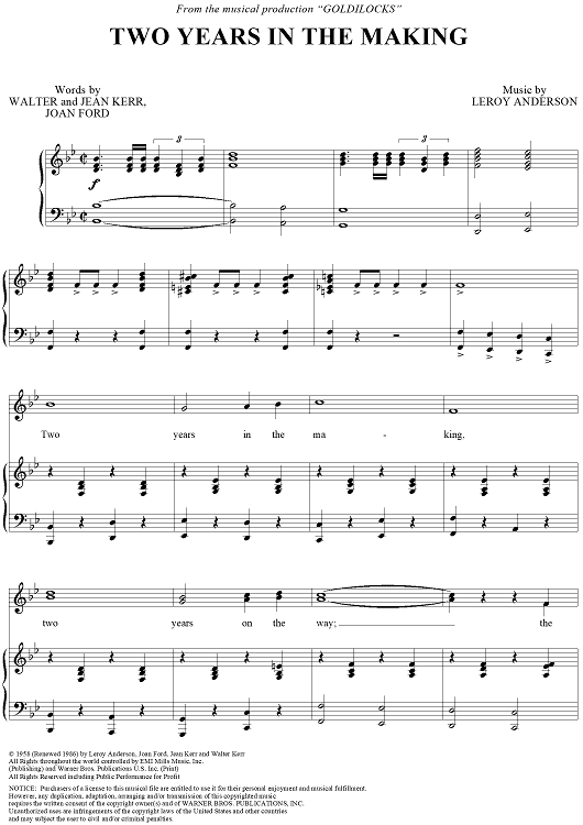 Digital Sheet Music for Two Years in the Making by Leroy Anderson, Walter Kerr, Jean Kerr, Joan Ford scored for Piano/Vocal; id:183977