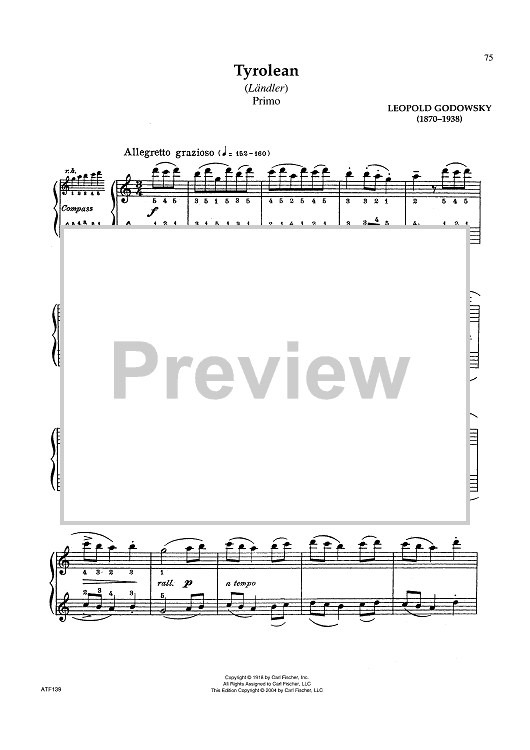Digital Sheet Music for Tyrolean (Låndler) - from Seven Modern Dances by Leopold Godowsky scored for 2 Pianos, 4 Hands; id:439586
