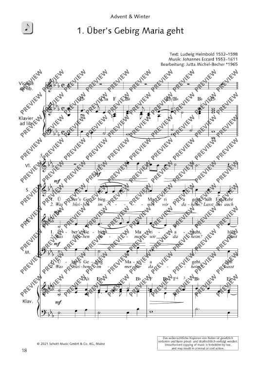 Digital Sheet Music for Über's Gebirg Maria geht - Score by Johannes Eccard, Jutta Michel-Becher scored for Mixed Choir (sab) And Piano; id:496383