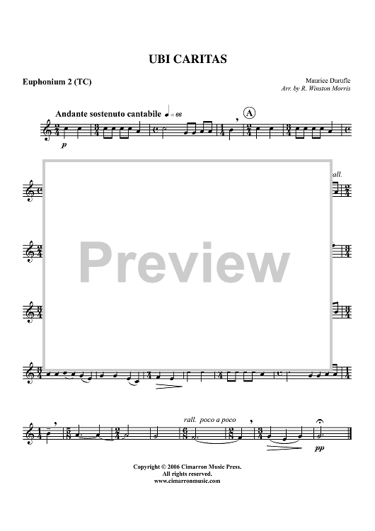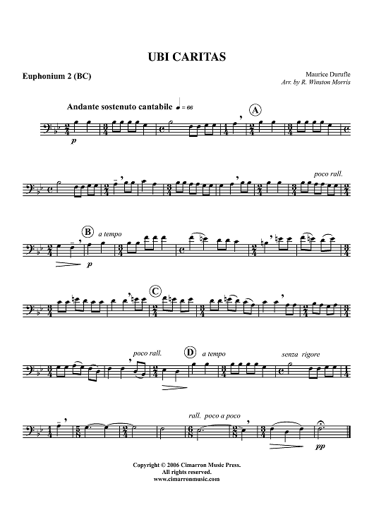 "Ubi Caritas - Euphonium 2 BC/TC" Sheet Music by Maurice Durufle