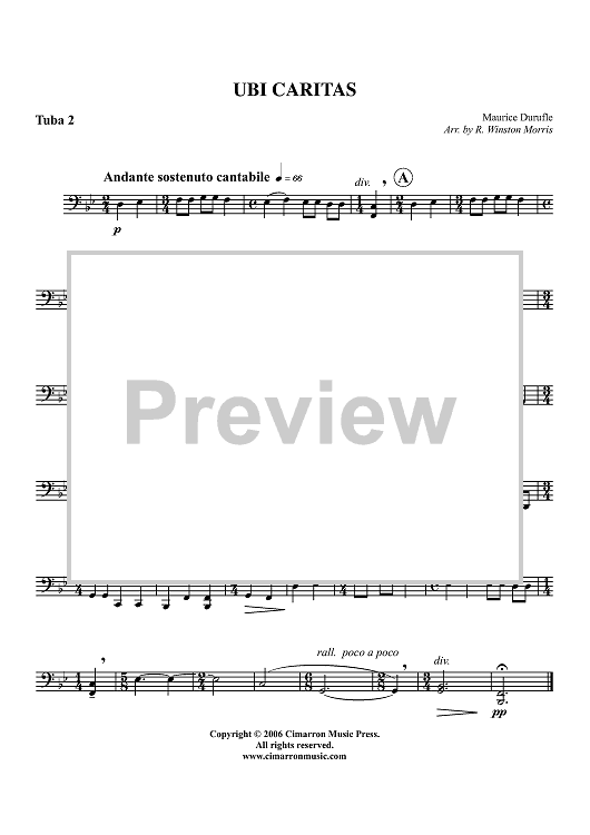 Digital Sheet Music for Ubi Caritas - Tuba 2 by Maurice Durufle, R. Winston Morris scored for Tuba Quartet; id:357615
