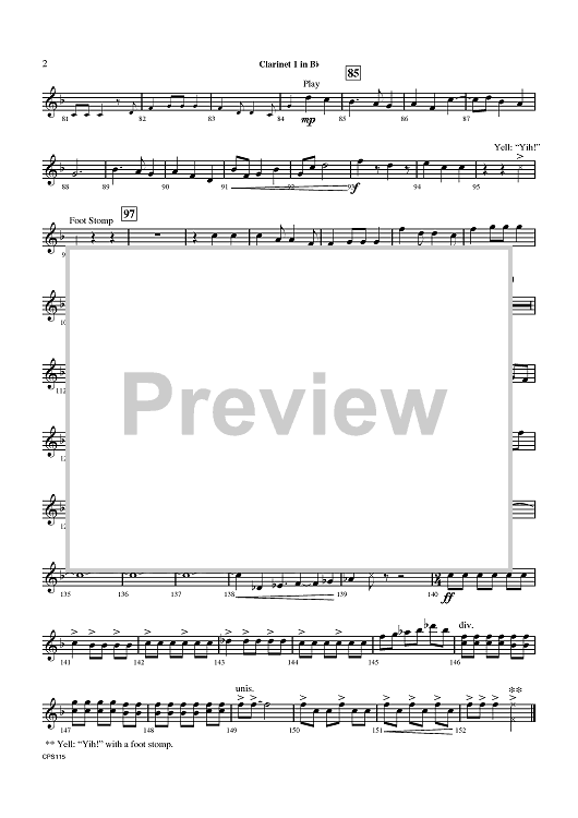 Digital Sheet Music for Ugandan Festival - Clarinet 1 in Bb by Kevin Mixon scored for Concert Band; id:420159