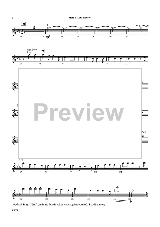 Digital Sheet Music for Ugandan Festival - Flute 1 (Opt. Piccolo) by Kevin Mixon scored for Concert Band; id:420156