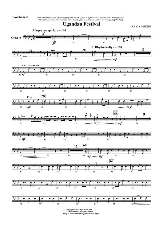 "Ugandan Festival - Trombone 2" Sheet Music by Kevin Mixon