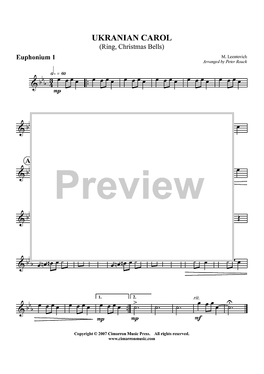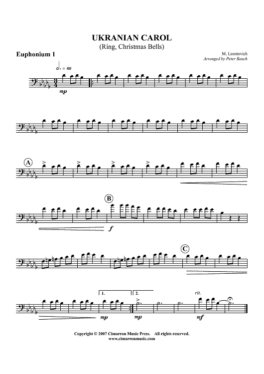 "Ukrainian Carol (Ring, Christmas Bells) - Euphonium 1 BC/TC" Sheet Music by M. Leontovich