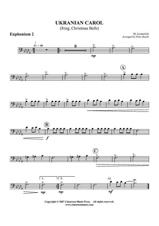 "Ukrainian Carol (Ring, Christmas Bells) - Euphonium 2 BC/TC" Sheet Music by M. Leontovich