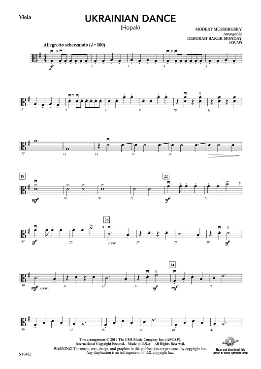 "Ukrainian Dance (Hopak) - Viola" Sheet Music by Modest Musorgsky