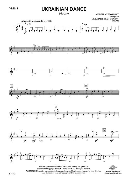 "Ukrainian Dance (Hopak) - Violin 1" Sheet Music by Modest Musorgsky