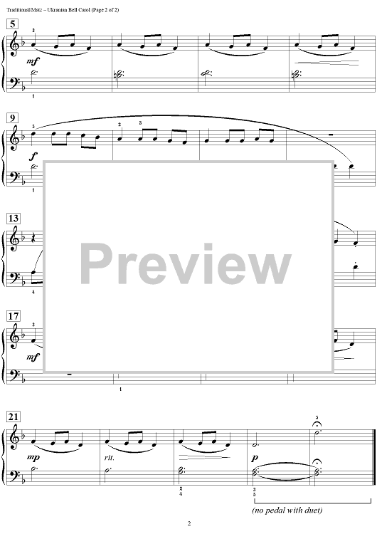 Digital Sheet Music for Ukranian Bell Carol by Carol Matz, Traditional scored for Piano; id:453442