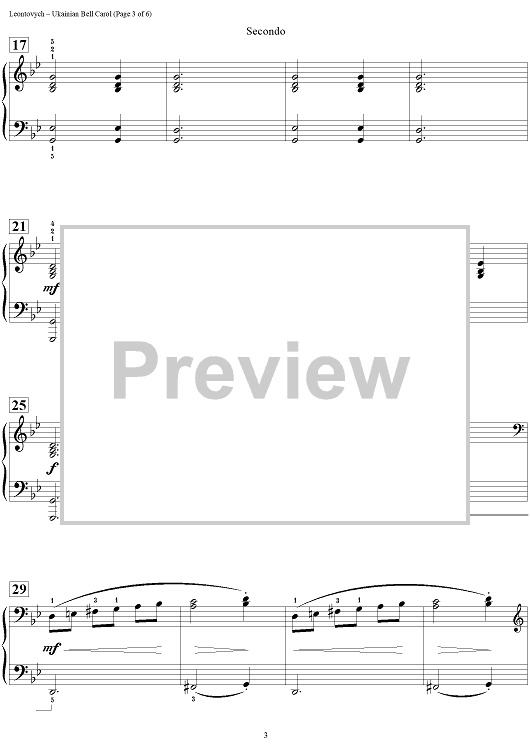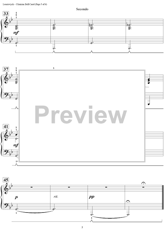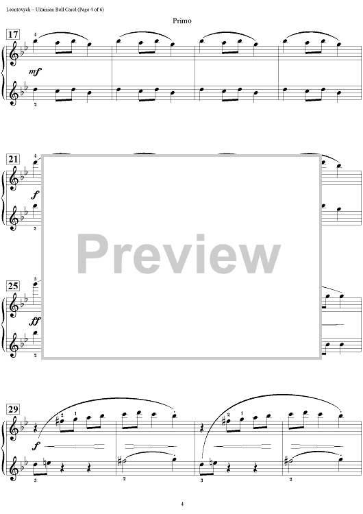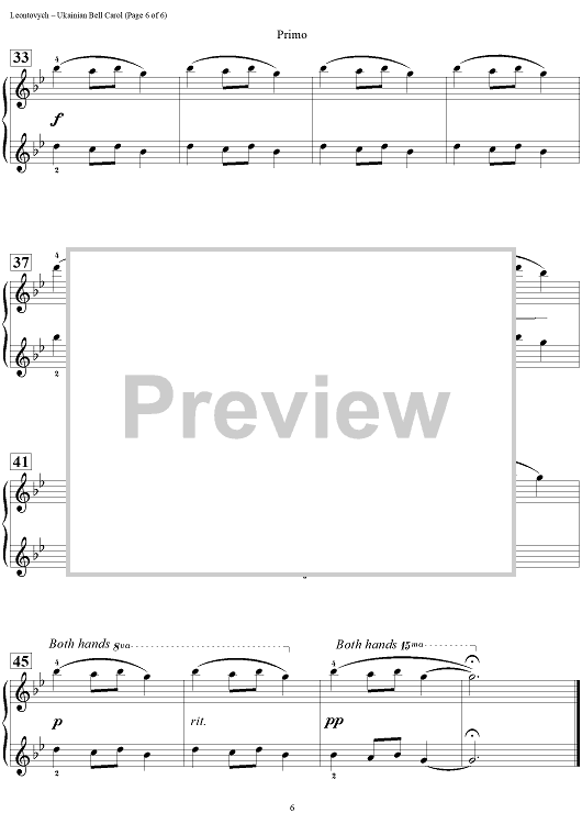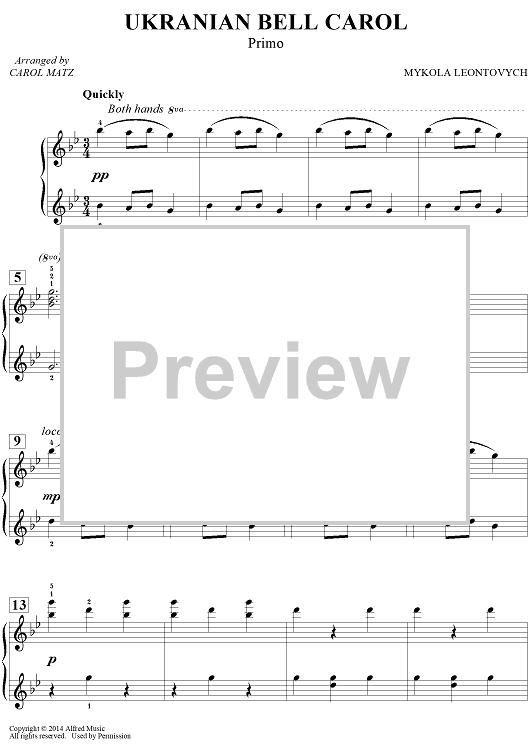 Digital Sheet Music for Ukranian Bell Carol by Carol Matz, Mikola Leontovic scored for 1 Piano, 4 Hands; id:454276