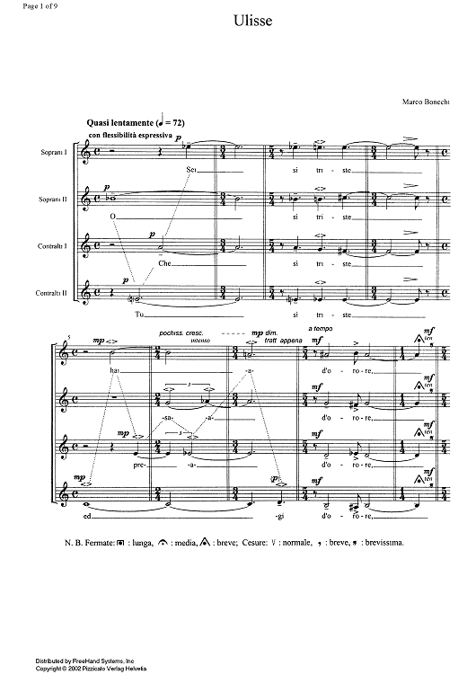 Digital Sheet Music for Ulisse - Score by , Marco Bonechi scored for SSAA Female Chorus; id:350497