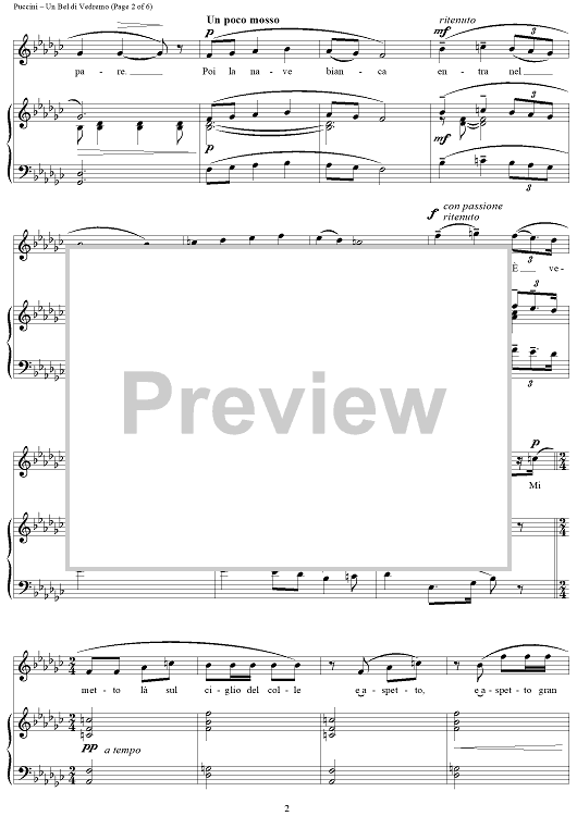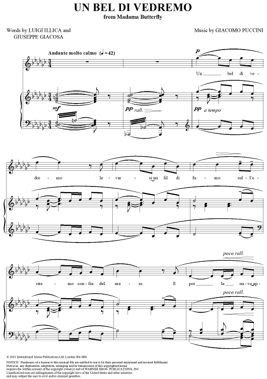 Digital Sheet Music for Un Bel di Vedtremo by Giuseppe Giacosa, Luigi Illica, Maria Callas, Giacomo Puccini scored for Voice/Piano; id:285598