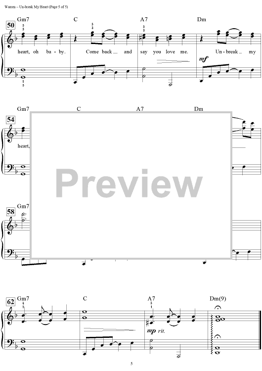 "Un-Break My Heart" Sheet Music by Toni Braxton