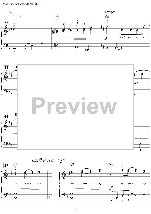 Digital Sheet Music for Un-Break My Heart by Diane Warren, Dan Coates, Toni Braxton scored for Easy Piano/Vocal/Chords; id:445346