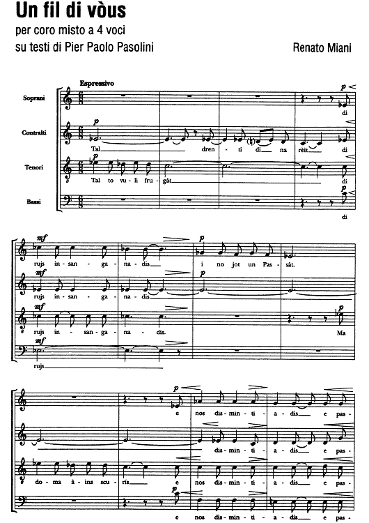 Digital Sheet Music for Un fil di vòus by Renato Miani scored for SATB Choir; id:330482