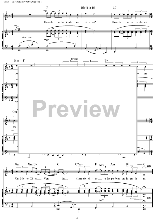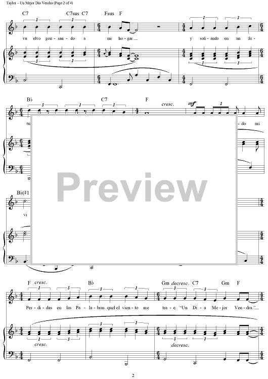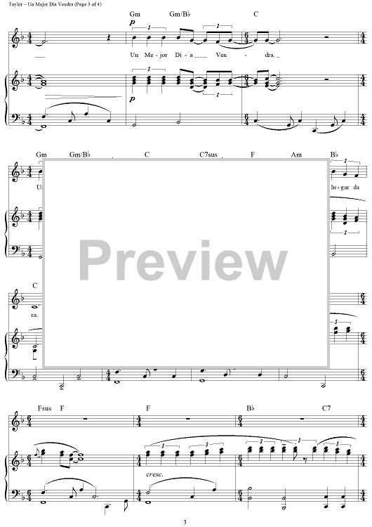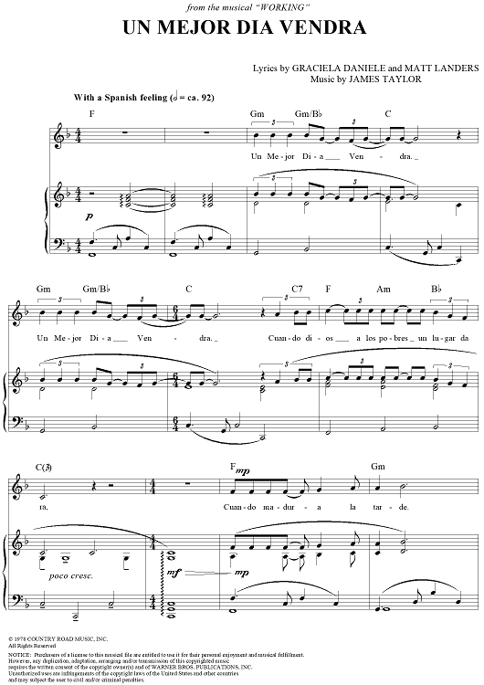 Digital Sheet Music for Un Mejor Dia Vendra by James Taylor, Graciela Daniele, Matt Landers scored for Piano/Vocal/Chords; id:174395