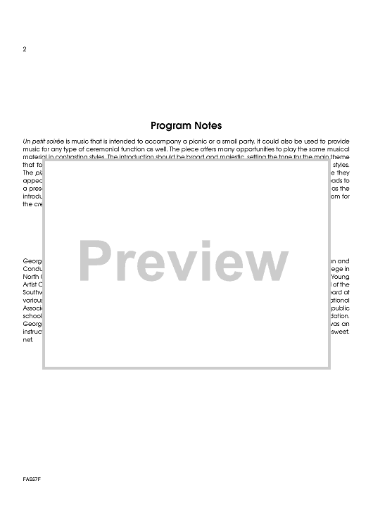 Digital Sheet Music for Un Petit Soiree - Score by George Sweet scored for Orchestra; id:410987