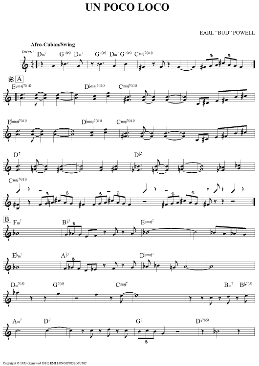 Digital Sheet Music for Un Poco Loco by Bud Powell scored for Lead Sheet; id:457029