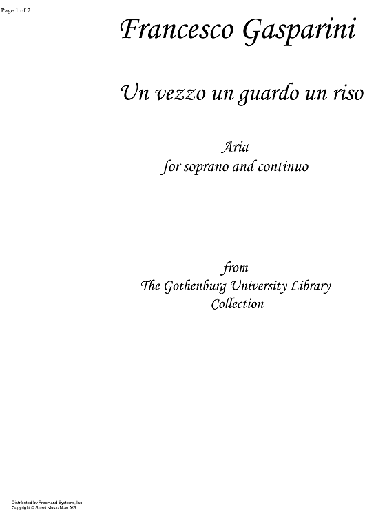 Digital Sheet Music for Un vezzo un guardo un riso by Francesco Gasparini, Eilif Zachariassen scored for Soprano/Continuo; id:323584