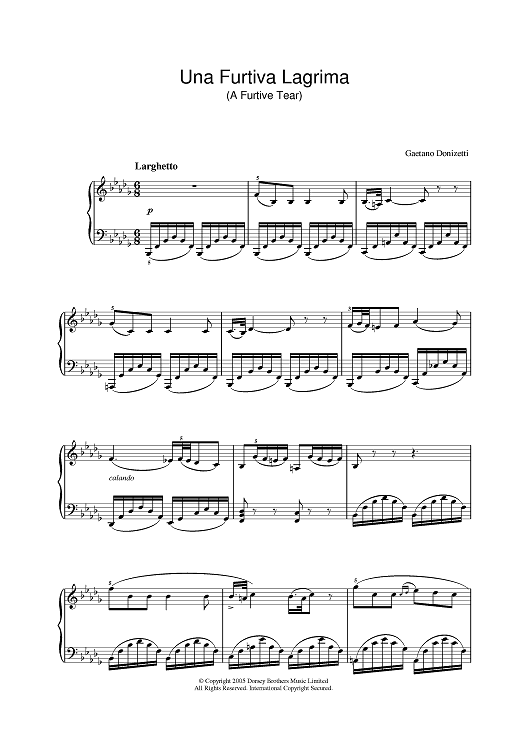 "Una Furtiva Lagrima (A Furtive Tear)" Sheet Music by Gaetano Donizetti
