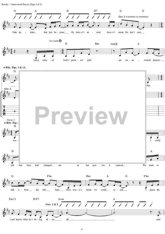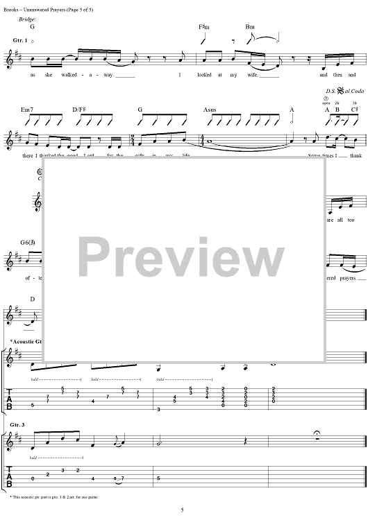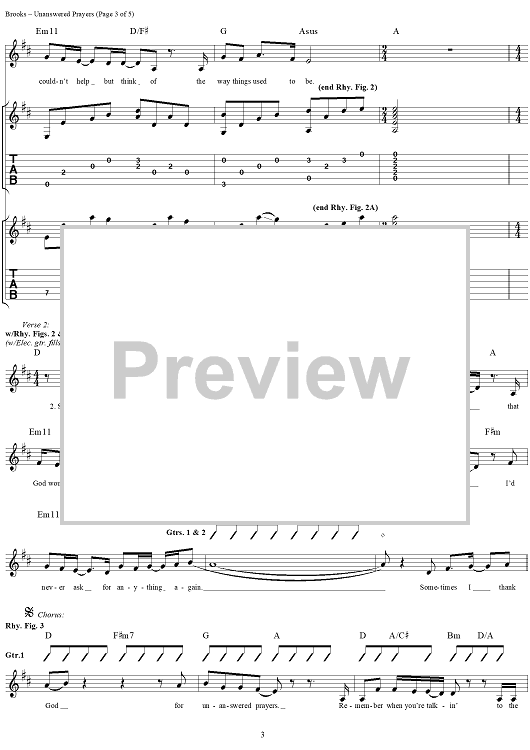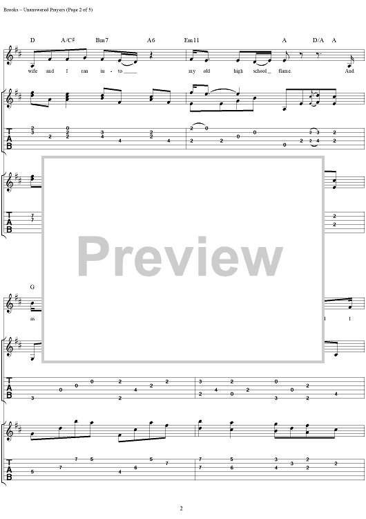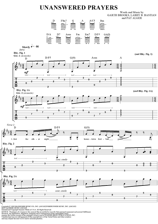 Digital Sheet Music for Unanswered Prayers by Garth Brooks, Pat Alger, Larry B. Bastian scored for Guitar Tab/Vocal; id:118884