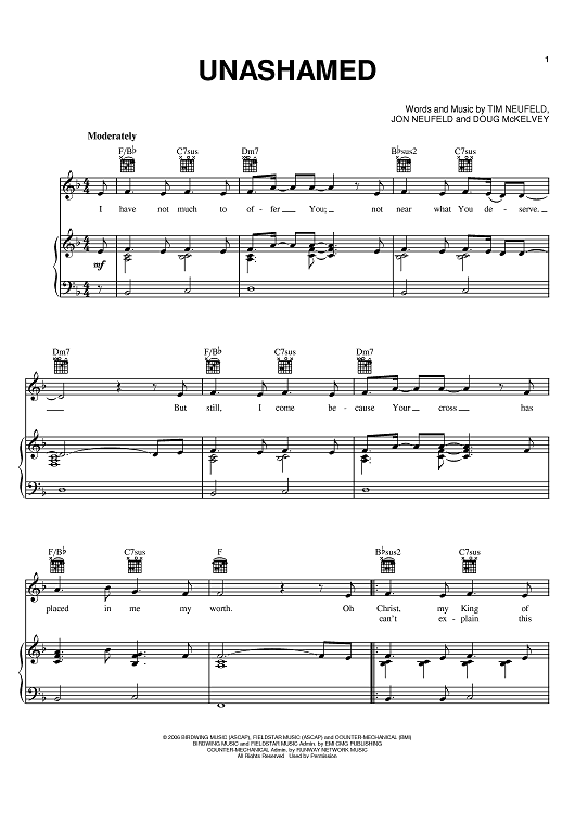 Digital Sheet Music for Unashamed by Tim Neufeld, Jon Neufeld, Starfield, Doug McKelvey scored for Piano/Vocal/Chords; id:393590