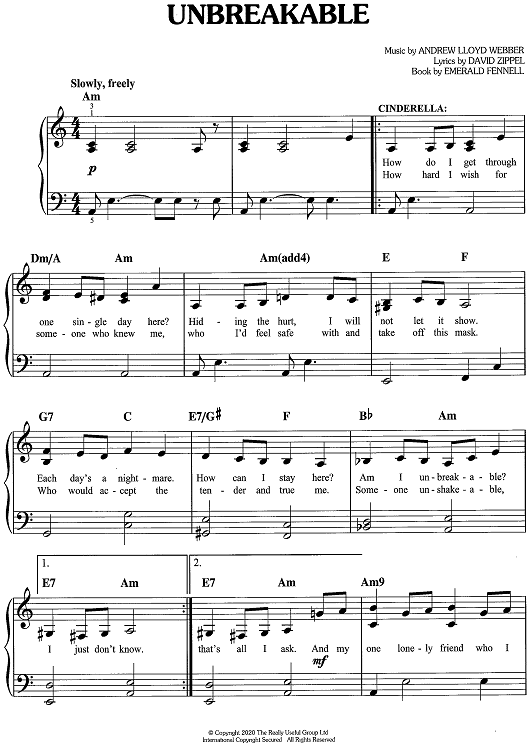 "Unbreakable - from Bad Cinderella" Sheet Music by Andrew Lloyd Webber