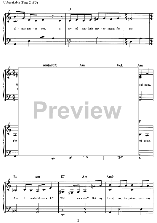 Digital Sheet Music for Unbreakable - from Bad Cinderella by Andrew Lloyd Webber, David Zippel scored for Easy Piano/Vocal/Chords; id:500090