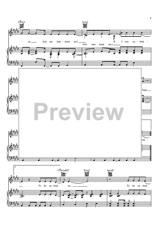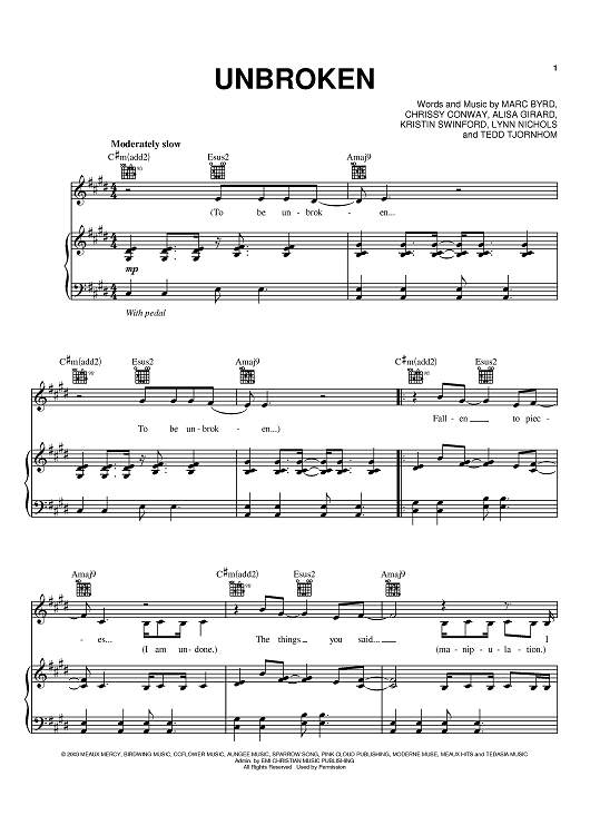 Digital Sheet Music for Unbroken by Marc Byrd, Chrissy Conway, Alisa Girard, ZOEgirl scored for Piano/Vocal/Chords; id:373163