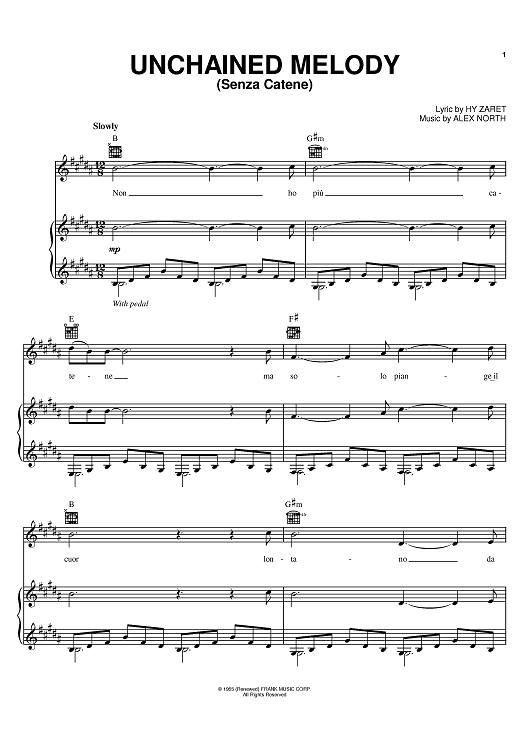 Digital Sheet Music for Unchained Melody by Elvis Presley, Alex North, The Righteous Brothers, Hy Zaret, Les Baxter, Il Divo, Al Hibbler scored for Piano/Vocal/Chords; id:387137