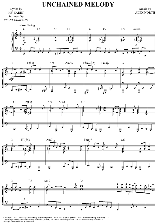 Digital Sheet Music for Unchained Melody by Alex North, Hy Zaret, Brent Edstrom scored for Piano Solo; id:463824