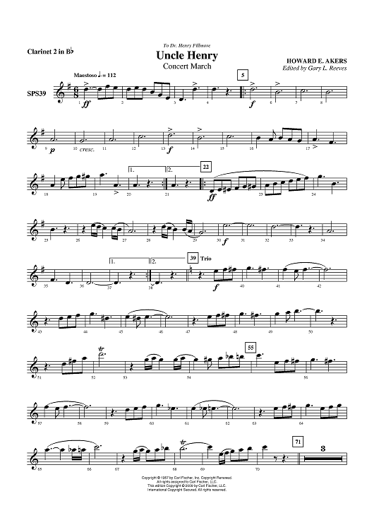 Digital Sheet Music for Uncle Henry - Clarinet 2 in B-flat by scored for Symphonic Band; id:406237