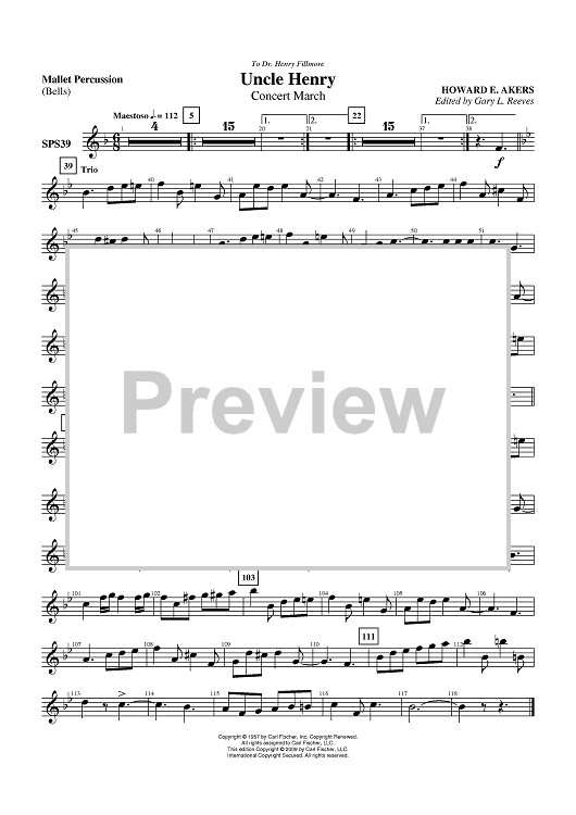 Digital Sheet Music for Uncle Henry - Mallet Percussion by scored for Symphonic Band; id:406258