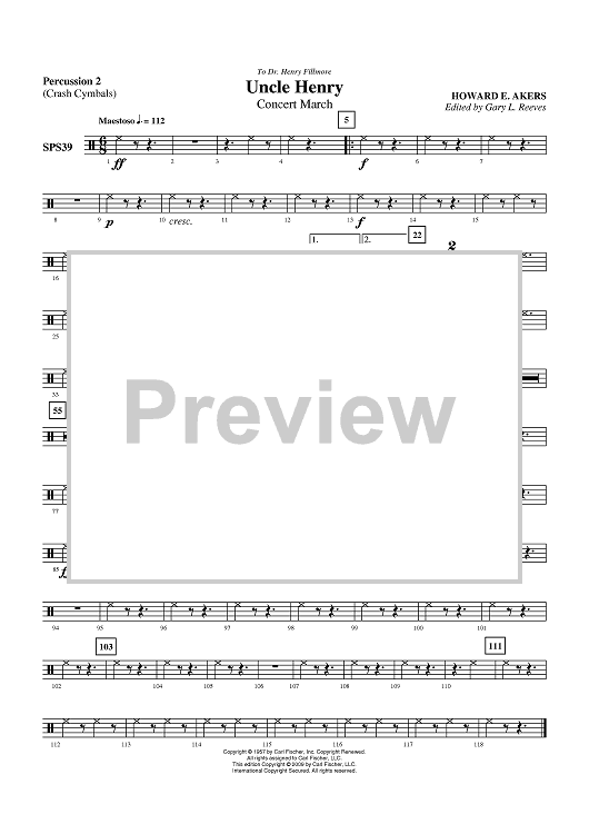 Digital Sheet Music for Uncle Henry - Percussion 2 by scored for Symphonic Band; id:406261
