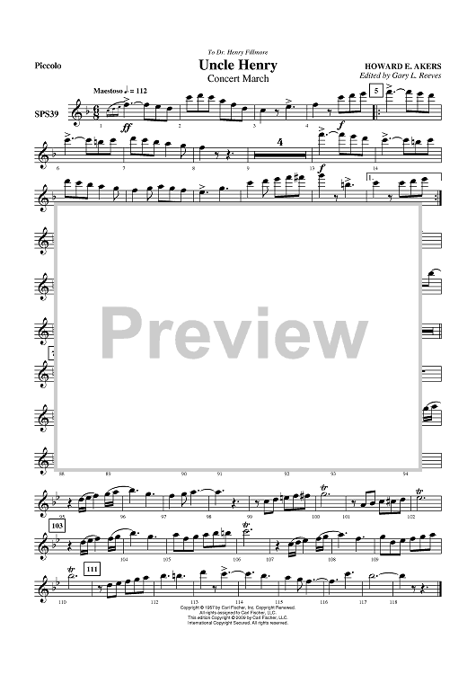Digital Sheet Music for Uncle Henry - Piccolo by scored for Symphonic Band; id:406232