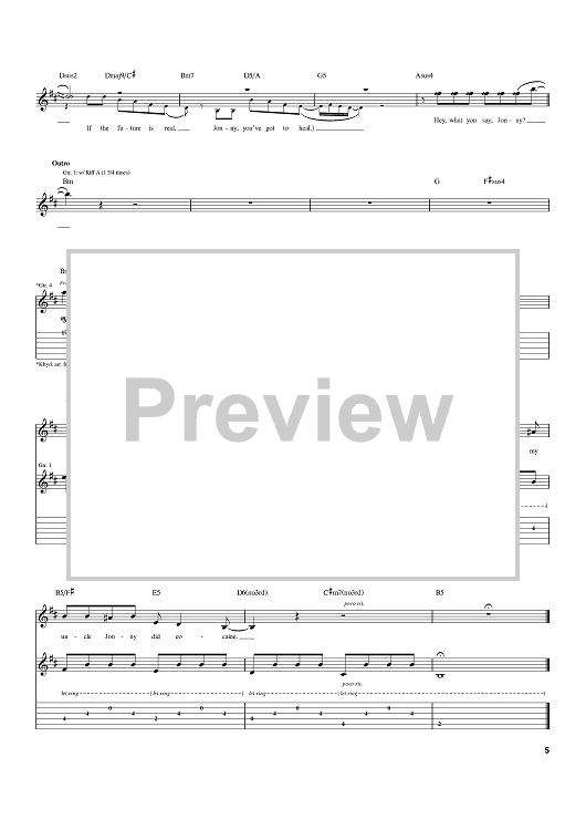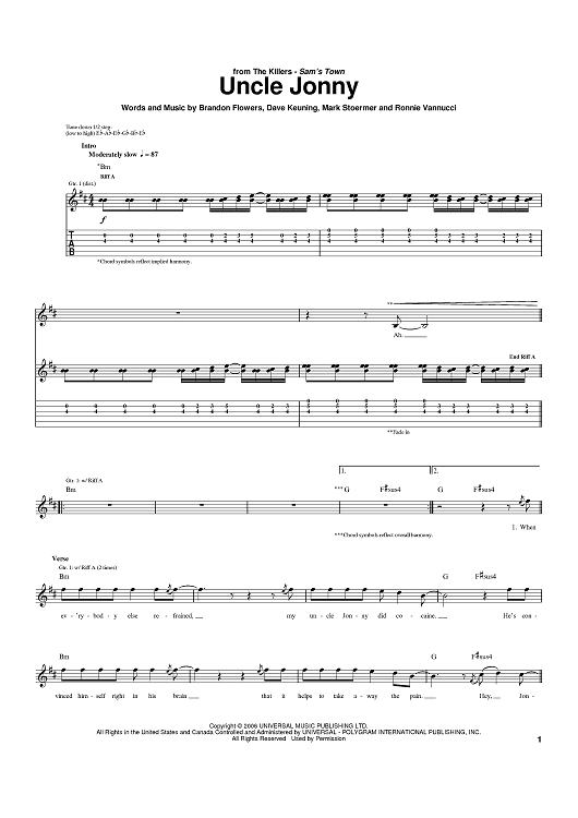 Digital Sheet Music for Uncle Jonny by Brandon Flowers, Dave Keuning, The Killers, Mark Stoermer, Ronnie Vannucci Jr. scored for Guitar Tab; id:397164