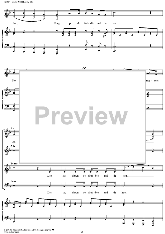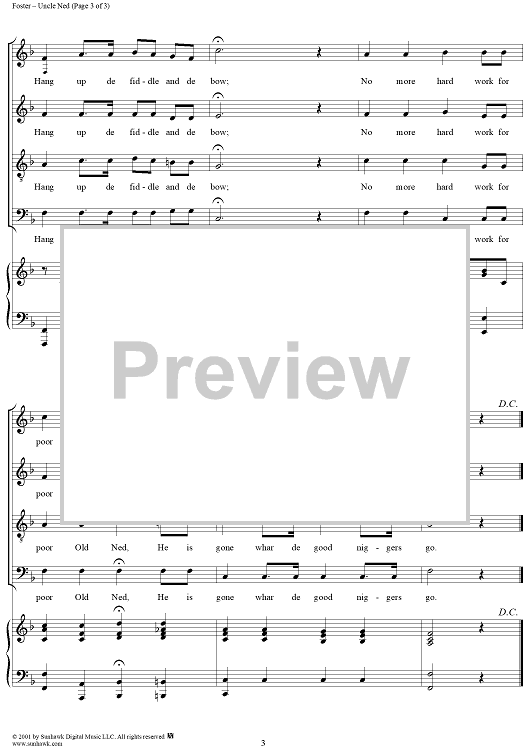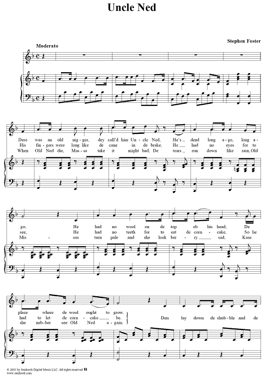 Digital Sheet Music for Uncle Ned by Stephen Foster scored for Piano/Vocal; id:269512