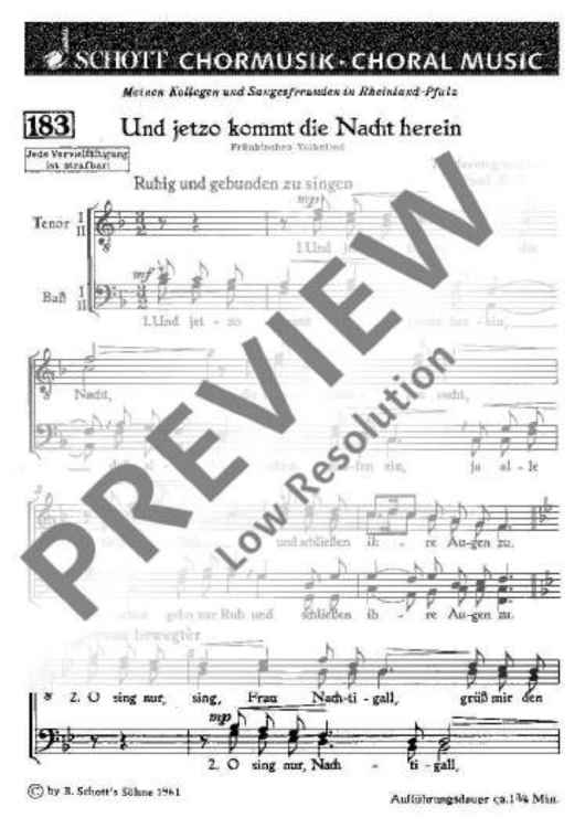 Digital Sheet Music for Und jetzo kommt die Nacht herein - Choral Score by Paul Zoll scored for Men's Choir; id:479733