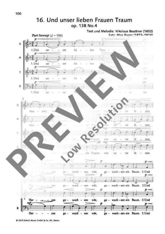 Digital Sheet Music for Und unser lieben Frauen Traum by Max Reger, Singer Pur scored for Mixed Choir (saatbarb) Or 6 Solo Parts; id:489302
