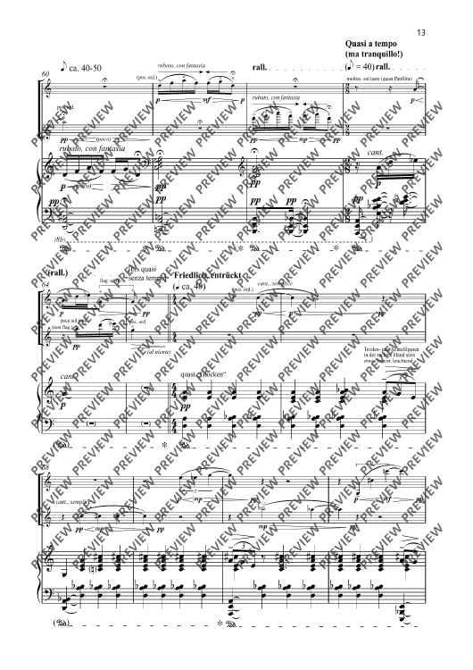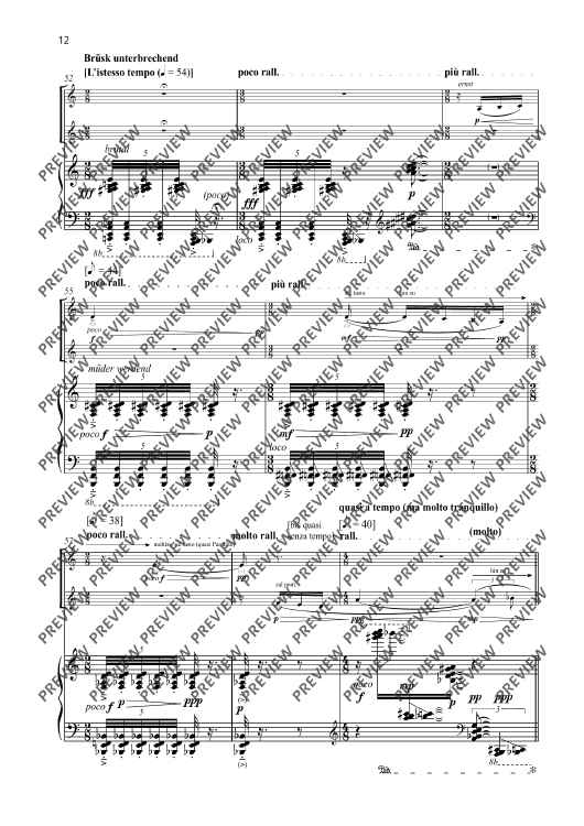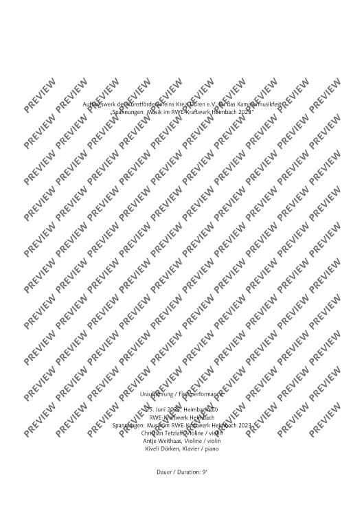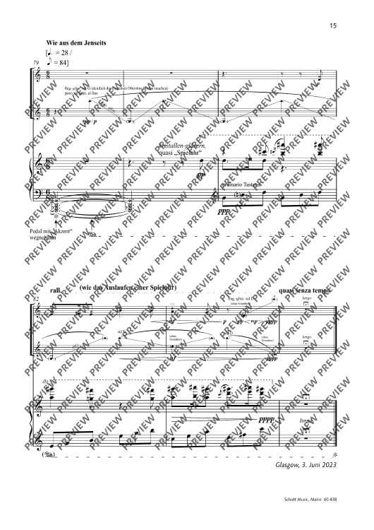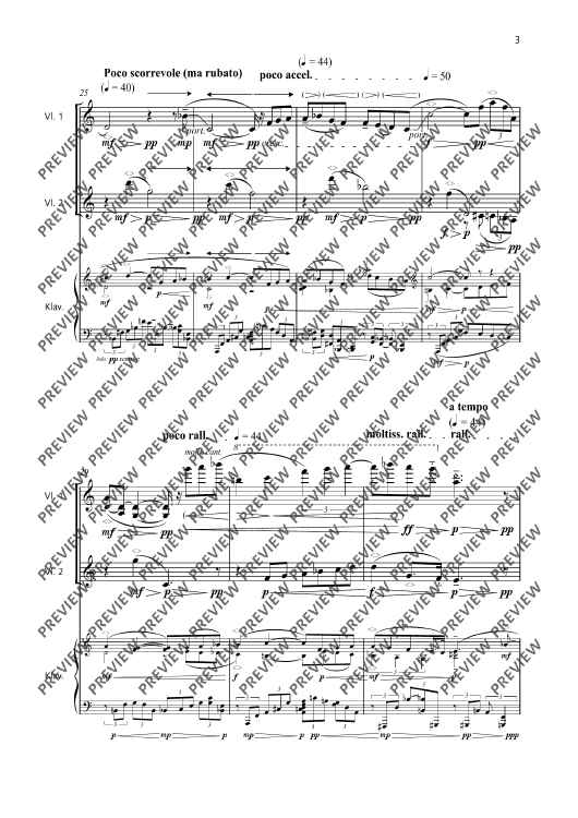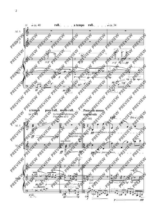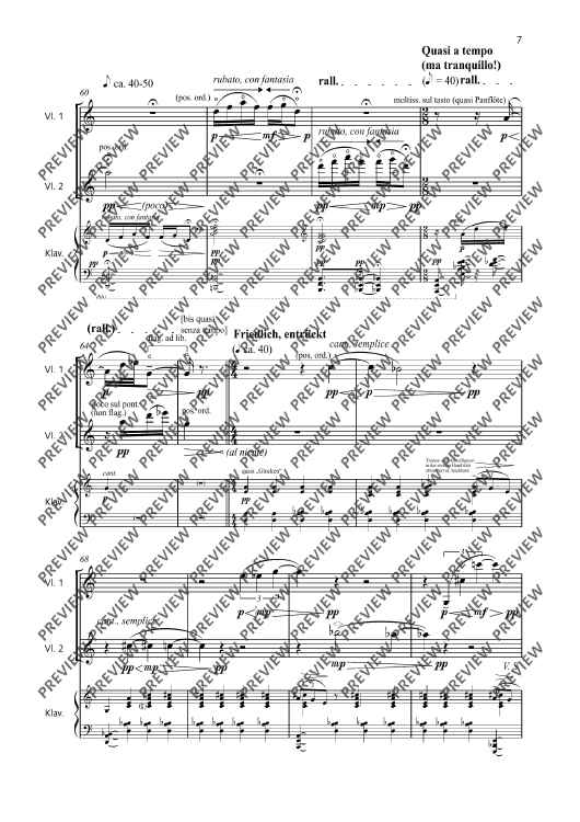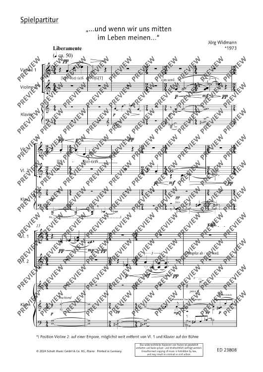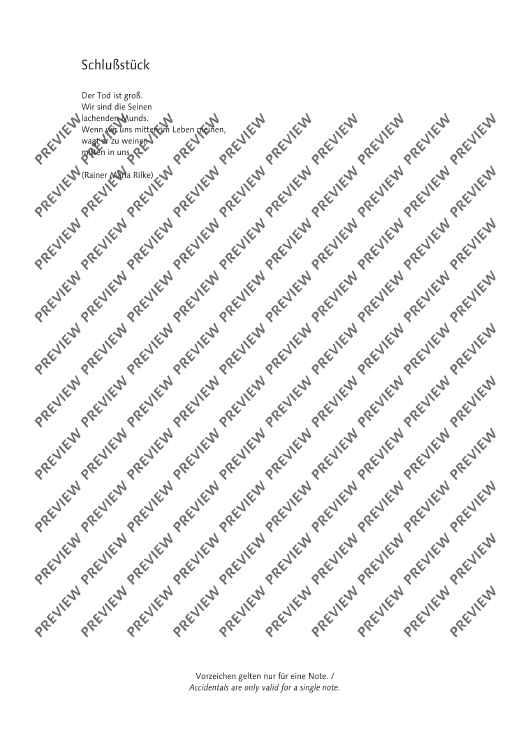 Inspired by Rainer Maria Rilke's poem Schlußstück Widmann created an In Memoriam for the pianist and conductor Lars Vogt with this work for two violins and piano. Widmann ends the piece hauntingly „Wie aus dem Jenseits“ with the imitation of an expiring music box in the piano.