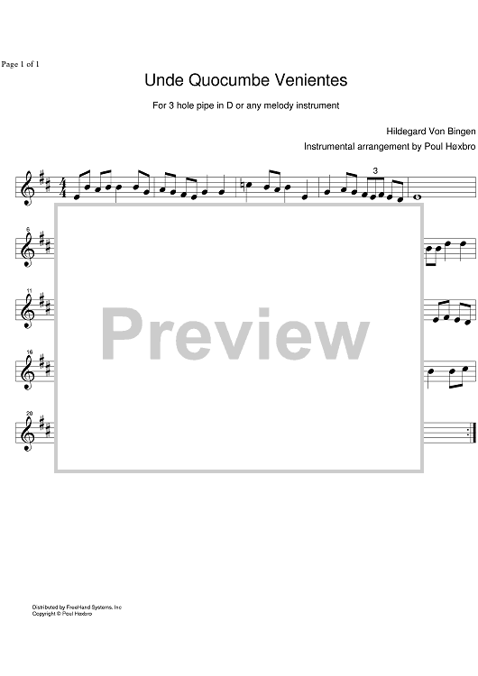 Digital Sheet Music for Unde Quocumbe Venientes by , Hildegard von Bingen, Poul Hoxbro scored for D Pipe or any Instrument; id:323848