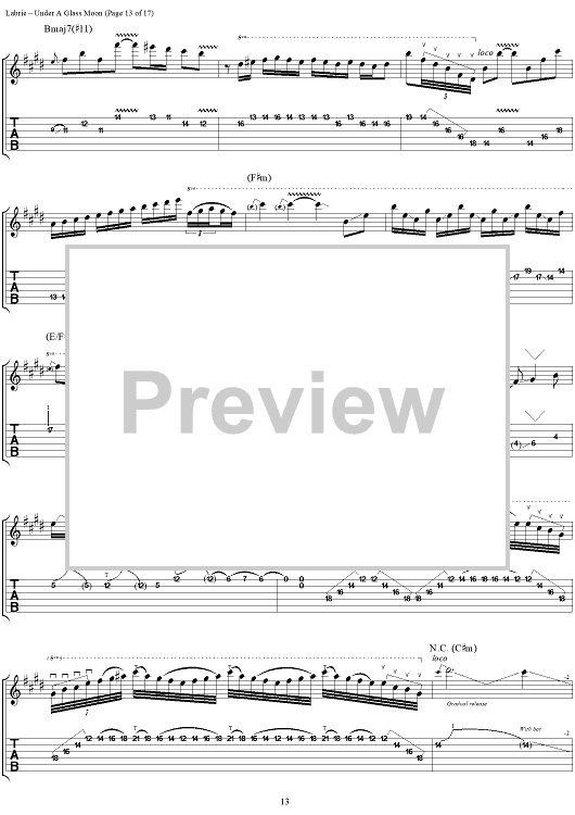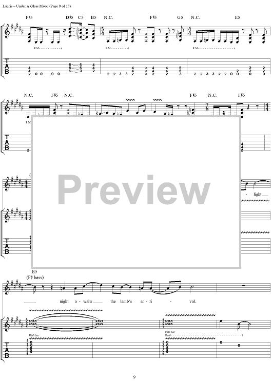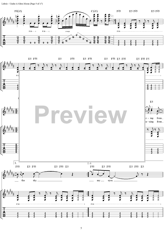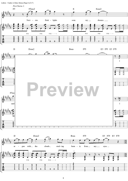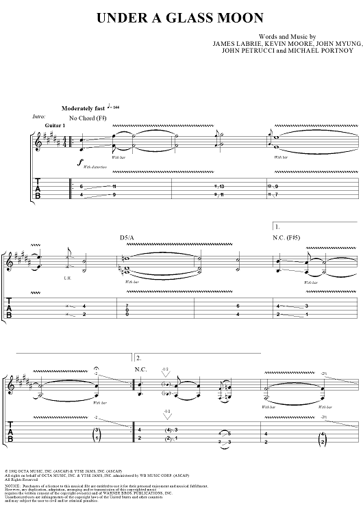 "Under a Glass Moon" Sheet Music by Dream Theater