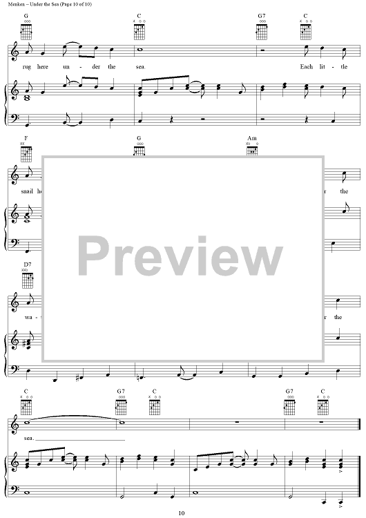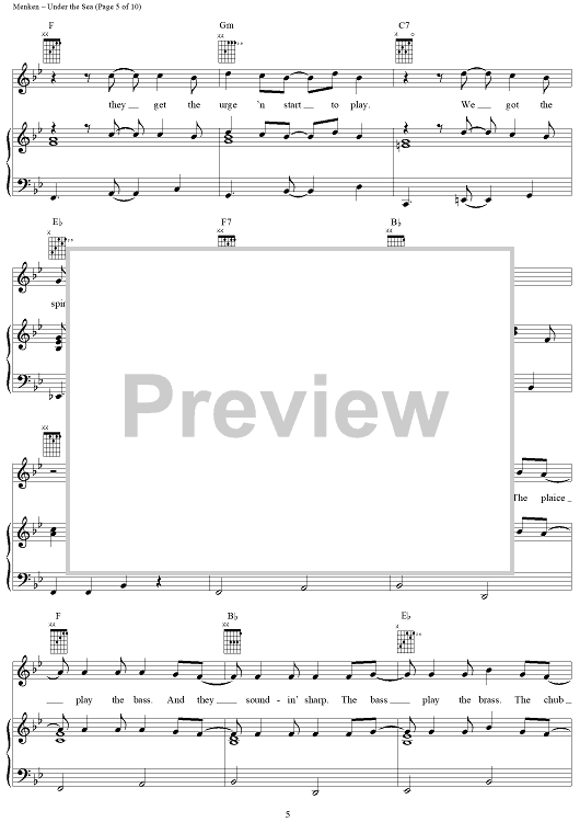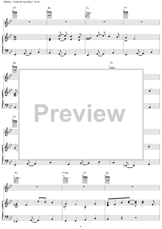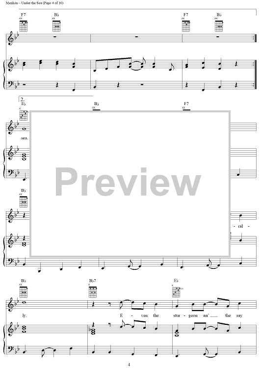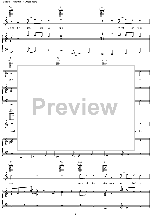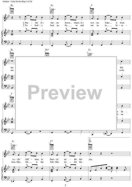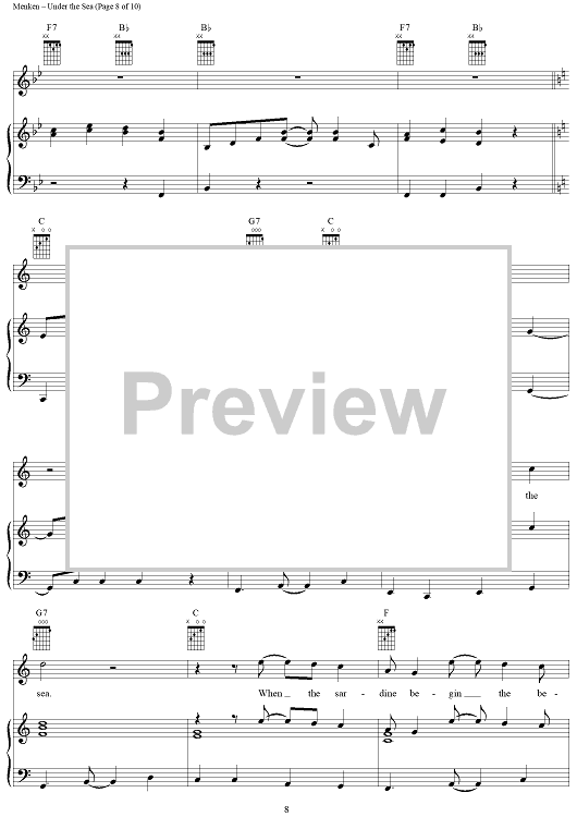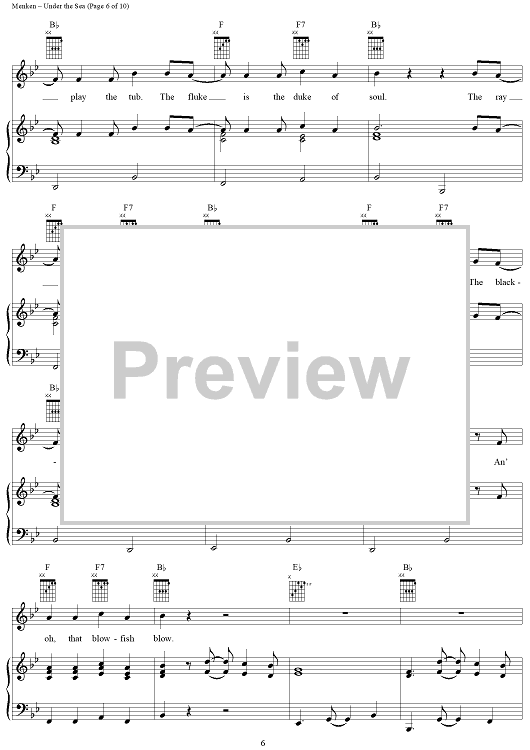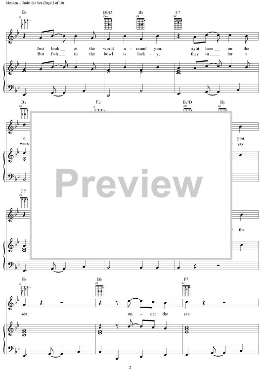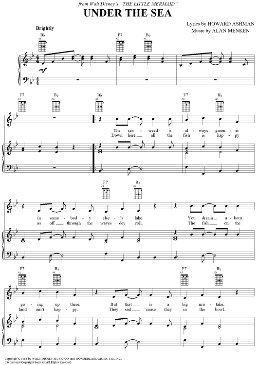 Digital Sheet Music for Under the Sea by Alan Menken, Howard Ashman scored for Piano/Vocal/Chords; id:365269