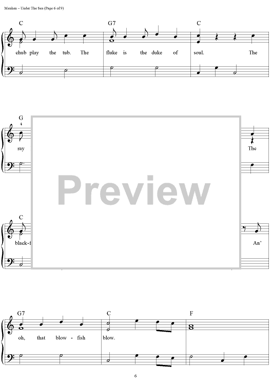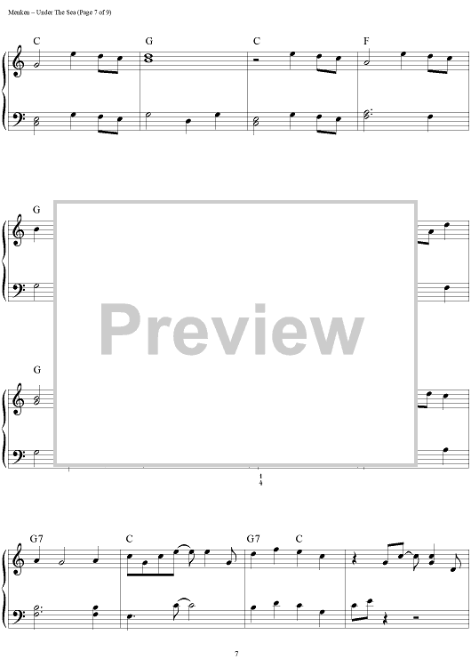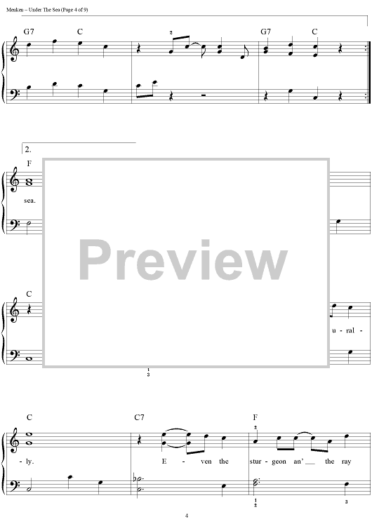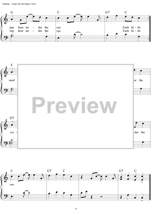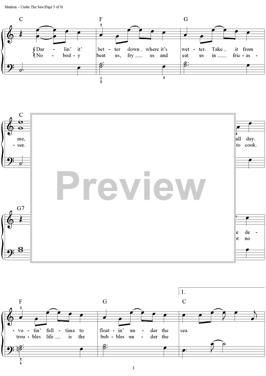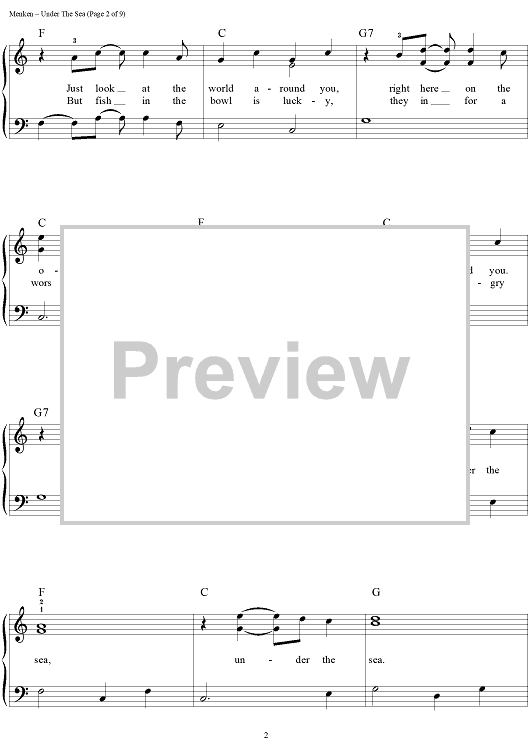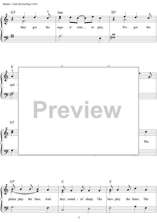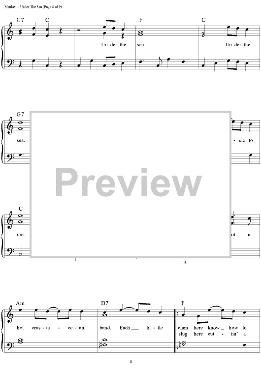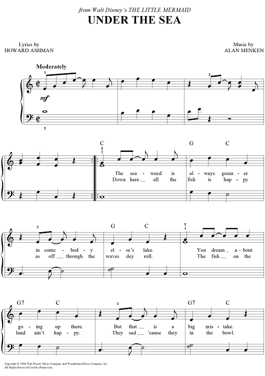 Digital Sheet Music for Under the Sea by Alan Menken, Howard Ashman scored for Easy Piano/Vocal/Chords; id:453227