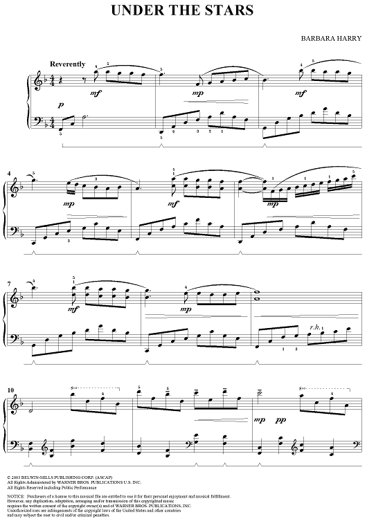Digital Sheet Music for Under the Stars by , Barbara Harry scored for Piano Solo; id:316438