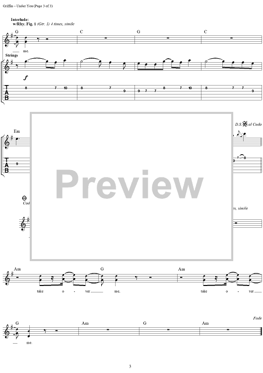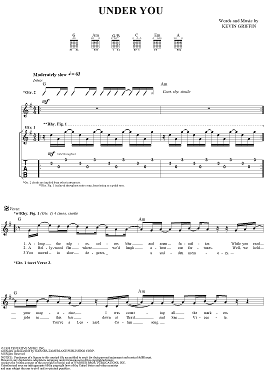 Digital Sheet Music for Under You by Better Than Ezra, Kevin Griffin scored for Guitar Tab/Vocal; id:113015