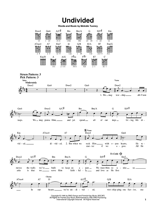 Digital Sheet Music for Undivided by Melodie Tunney, First Call scored for Easy Guitar; id:398264