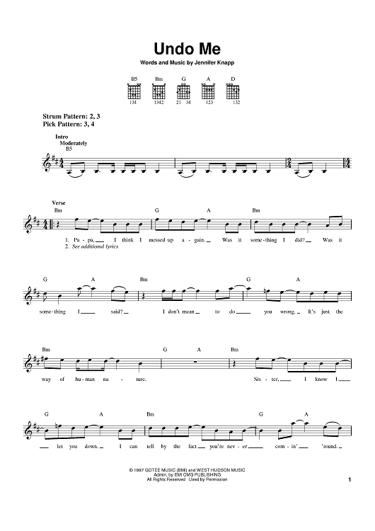 "Undo Me" Sheet Music by Jennifer Knapp